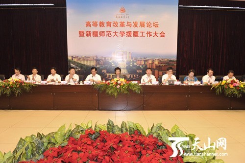 天山网讯(记者 张新军 摄影报道)7月10日,高等教育改革与发展论坛暨新疆师范大学援疆工作大会在新疆师范大学召开。“助力新疆,提升质量,携手合作,共同发展”是这次会议的主题。