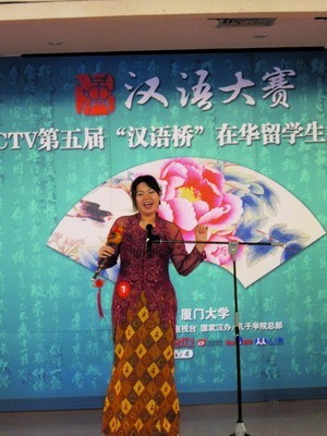 本次比赛的主持人吴孟天,是厦大的美国留学生。他曾在2010年“汉语桥”大赛总决赛获得铜奖。他说,刚来中国时想通过听歌学中文,买了周杰伦的CD,结果发现“被骗了”,因为周杰伦唱的中文歌他压根就听不懂。