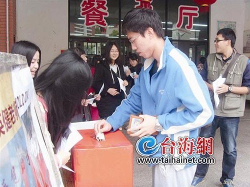 最近一次为英健老师捐款是在3月5日,学雷锋日这一天。地点在厦门大学漳州校区北区、中区、南区的食堂门口。2011级传播学硕士生章蕾告诉导报记者,昨天中午,几个老师一起将漳州校区上周募捐的款项总计30769.30元人民币,存到英健的账号。银行花了一个多小时才清点完毕。