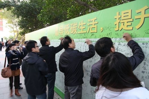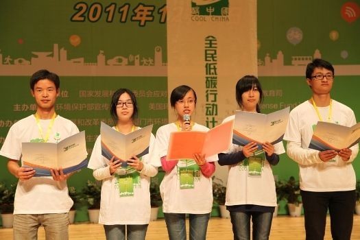 在酷中国项目厦门站的启动仪式上。大学生志愿者代表宣读了低碳行动倡议书。号召大家从身边的小事做起,“每周绿色出行一天,每周素食一天,每周手洗一次衣服,每周少看一小时电视,每周少搭一次电梯、每周收集一次洗澡水冲洗厕所、每周少喝一个瓶装水”。据专家测算,如果能遵守这些简单的承诺,每人每周可减少22公斤二氧化碳,坚持一年的话,一人就可以为地球减排一吨二氧化碳。每个人可以通过自己的实际行动,为实现国家十二五期间单位国内生产总值能源消耗降低16%、单位国内生产总值二氧化碳排放降低17%的减排目标以及减缓全球变暖做出贡献。