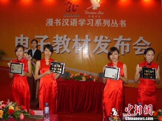 厦大孔子学院南方基地借助在厦门举办的第七届海峡两岸图书交易会平台推出“移动孔子学院云资源库”,汉语学习者在移动孔子学院云资源库中下载漫书汉语学习系列丛书这套电子教材,安装在自己的平板电脑上,即可随时随地学习汉语。