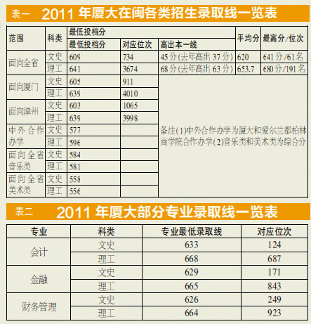 厦大今年在闽各类招生出档线昨公布(见附表一),要注意的是,文史和理工类的考生在衡量自己是否被厦大录取,不仅要看分数,还要看位次。