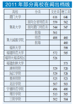 备注:厦大、集大和诚毅学院的出档线已经得到学校招办证实;其他高校的出档线尚未得到招办证实,仅供参考。