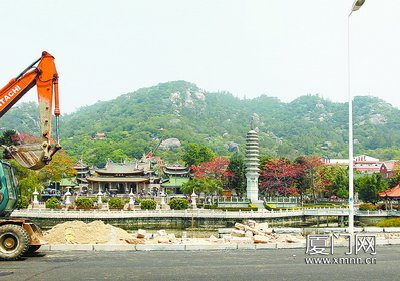 南普陀百米长荷花池围墙将降低半米,该片区交通改善项目主体工程将于10月1日前完工
