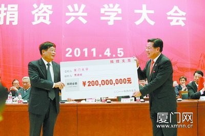自称与厦大有十几年缘分,要以陈嘉庚为榜样,绝不搞“裸捐”