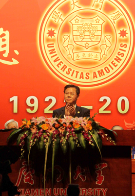 4月6日,厦门大学校长朱崇实在建校90周年庆祝大会上致辞(朱兴鑫摄)