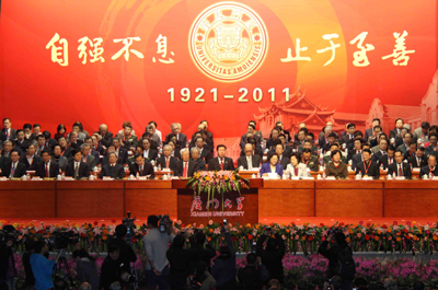 4月6日,厦门大学建校90周年庆祝大会在建南大会堂隆重举行。(朱兴鑫摄)