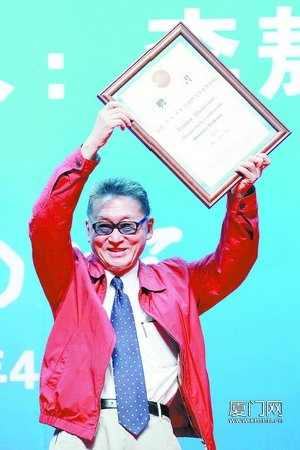 演讲前,李敖获聘厦大名誉教授,厦大校长朱崇实为他颁发聘书。