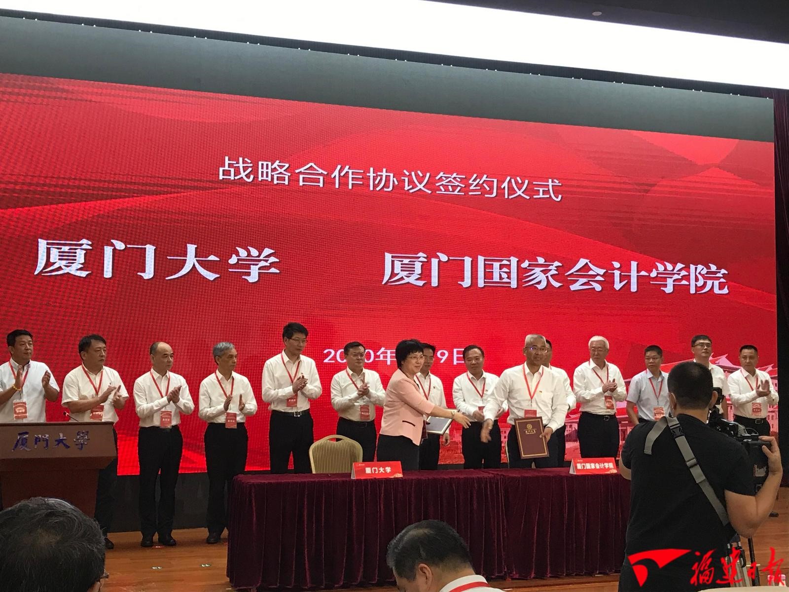 为进一步充分发挥厦门大学作为国家会计学院董事会成员单位的优势,更好地推动厦门大学“双一流”建设和厦门国家会计学院“国际知名会计学院”建设,与厦门国家会计学院签订战略合作协议,加强在党建共建、人才培养、师资交流、科研合作、资源共享等方面开展深入合作,促进共同发展。