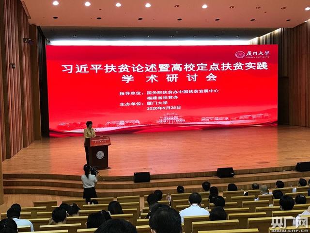 央广网厦门9月25日消息(记者陈庚 通讯员欧阳桂莲)为期5天的“习近平扶贫论述暨高校定点扶贫实践”学术研讨会25日在厦门大学开幕,旨在深化习近平扶贫重要论述的研究,总结地方扶贫实践经验和高校定点扶贫经验,从理论研究上助力推进脱贫攻坚事业。 此次会议由国务院扶贫办中国扶贫发展中心、福建省扶贫办指导,厦门大学主办。来自国务院扶贫办、国家发改委、浙江大学、西南大学、暨南大学、华中科技大学、北京师范大学、吉林大学、山东大学、宁夏大学、山东菏泽扶贫办、贵州省委党校、江西省委党校、厦门大学等单位的近百名领导和专家学者与会。