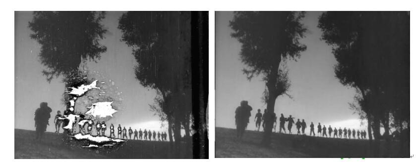 爱奇艺-厦门大学电影修复联合实验室的首部修复成果《小兵张嘎》4K版已在本届金鸡百花电影节修复单元进行展映。《小兵张嘎》是上世纪60年代初期拍摄制作的电影作品,胶片保存至今,已出现了大量划痕、脏斑、褪色、闪烁、变形、虚影等不同程度的破损问题。本片的修复,先于厦门大学音像文献中心对胶片拷贝进行物理整理和清洁,然后在胶片扫描仪上机扫描,生成数字文件。并且由爱奇艺修复团队利用自研的ZoomAI视频增强技术对画面进行AI修复,其包括了去划痕污渍、超分辨率、去噪锐化、智能插帧等多个算法模型,助力经典老片焕发新生,支持4K高清的沉浸式观影效果。其中,“去划痕算法”结合本帧画面内部信息和前后帧的信息,定位并去除由于胶片损伤导致的划痕、污渍、斑点等,让画面更加洁净。“超分辨率算法”在放大画面的同时,保持边缘锐度并合理增加图像细节,整体提升了画面的清晰度。 在AI算法基础上,结合厦门大学修复团队的人工精细修复及专家调色,最终实现既不破坏原片艺术风格,又尽可能恢复《小兵张嘎》的影像原貌,做到“修旧如旧”。此外,在音效方面,爱奇艺利用AI算法保证修复声音的效率和质量,通过自研声音增强算法,自动去除老片中常见的雪花声、底噪声以及裂纹声等噪声。同时使用自研的深度学习算法将增强后的单声道音频,进一步提升为双声道立体声和5.1声道环绕立体声,全面提升老片音质及氛围感、沉浸感。