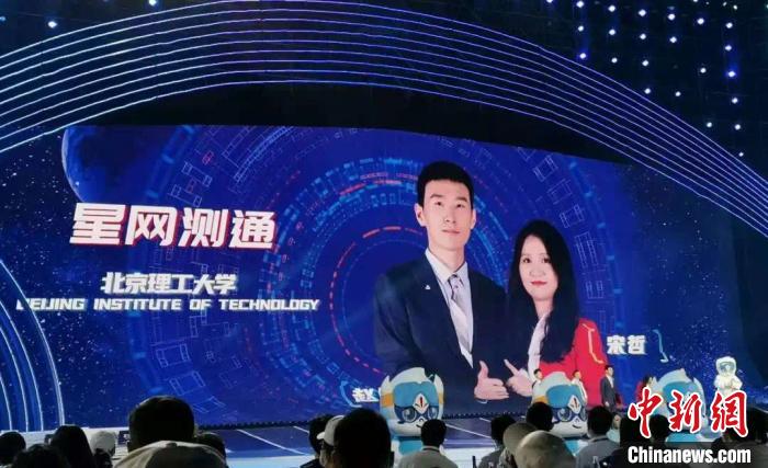 11月18日晚,第六届中国国际“互联网+”大学生创新创业大赛冠军争夺赛在广州大学城中心体育场举行。来自北京理工大学的参赛项目“星网测通”获得冠军。华南理工大学供图