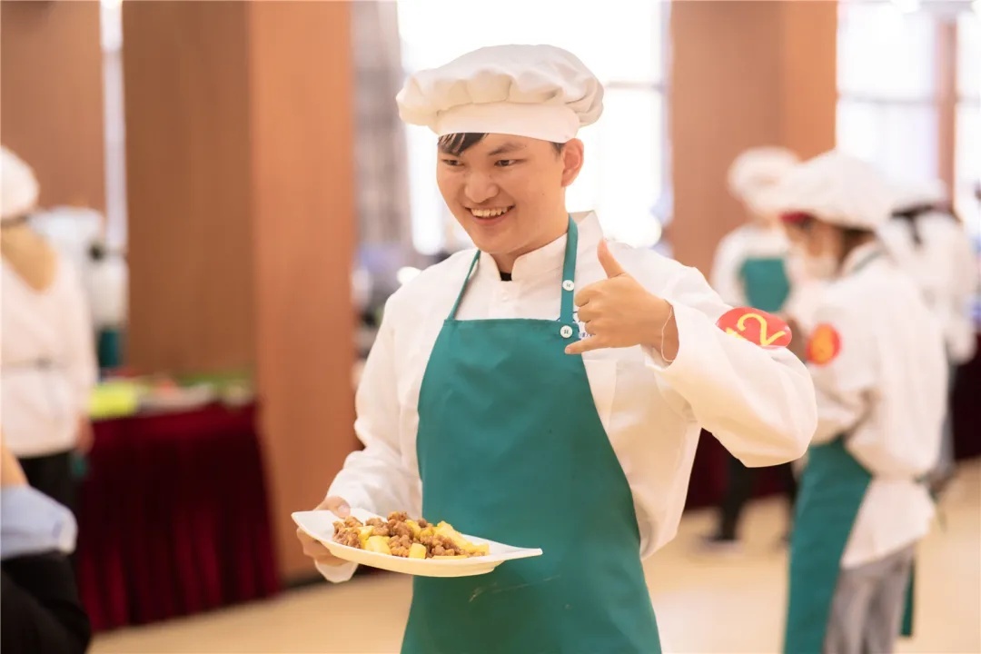 宽敞明亮的餐厅、摆放整齐的菜品、清一色的厨师服……一场别开生面的“厨王争霸赛”正在上演