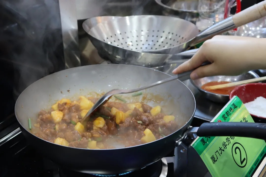有的同学驾轻就熟,切菜打蛋颠锅,都透露出一个“稳”。