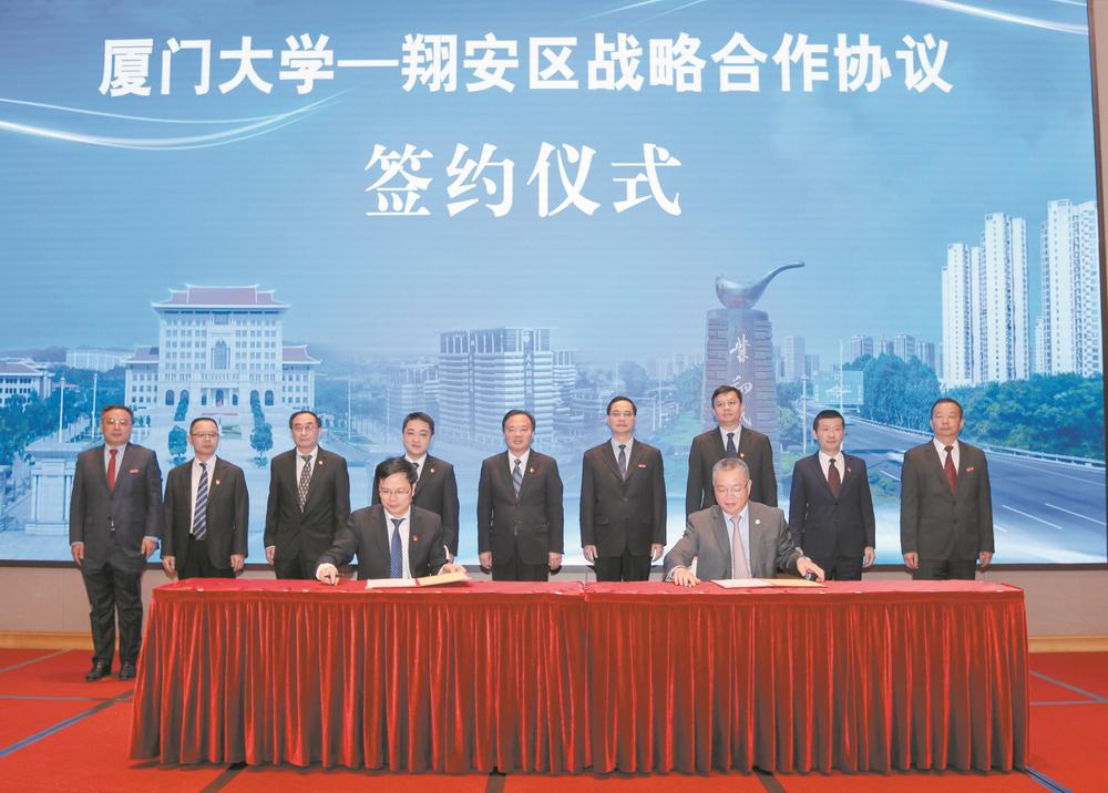 ▲ 厦门大学与翔安区签订战略合作协议。(朱毅力 摄)
