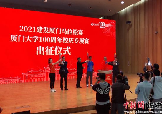 2021建发厦门马拉松赛厦门大学100周年校庆专项赛出征仪式。