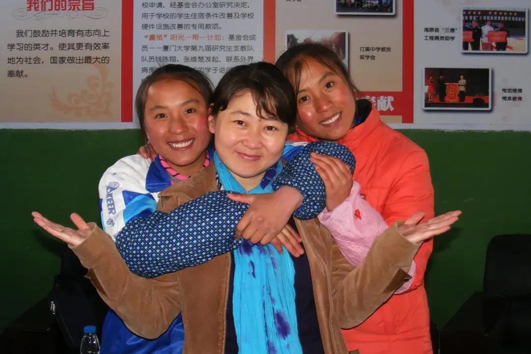 首届支教团成员张秀丽再次回到海原时与当年受助学生合影