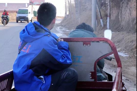 第22届研支团成员在村口乘三轮车去学生家中家访