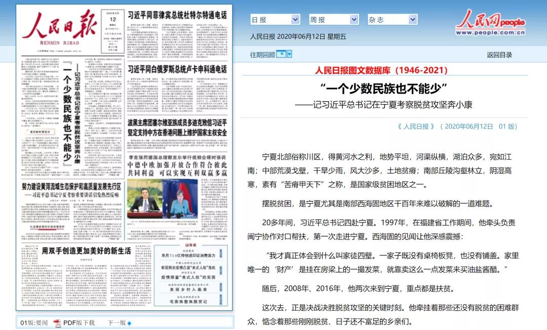 据人民日报报道,1997年,来宁夏扶贫的习近平,推动实施了一项重大工程“吊庄移民”:让生活在“一方水土养活不了一方人”的西海固群众,搬迁到贺兰山脚下的黄河灌区。他为移民村庄命名为“闽宁村”:“闽宁村现在是个干沙滩,将来会是一个金沙滩。”
