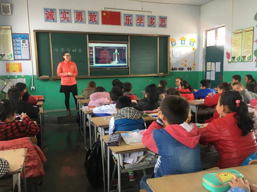 第17届研支团成员黄一凡在教室中用多媒体上《生活与科学》课程