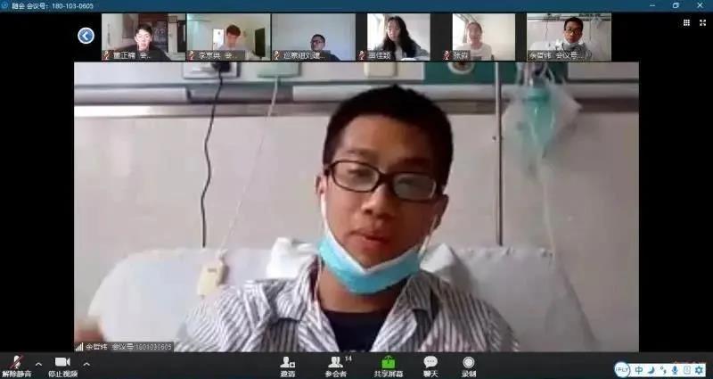 余哲炜住院期间仍参加线上党课,分享支教经验。