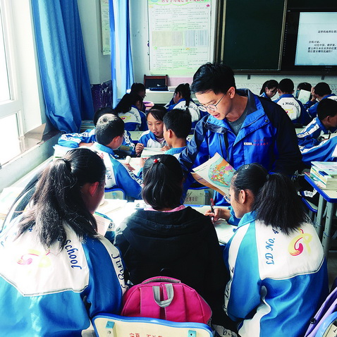 ■许继聪在支教学校上八年级地理课。