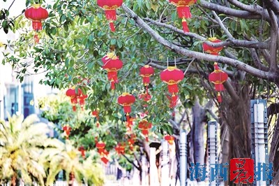 厦大嘉庚学院大红灯笼高高挂,年味十足。朱鲜艳 摄