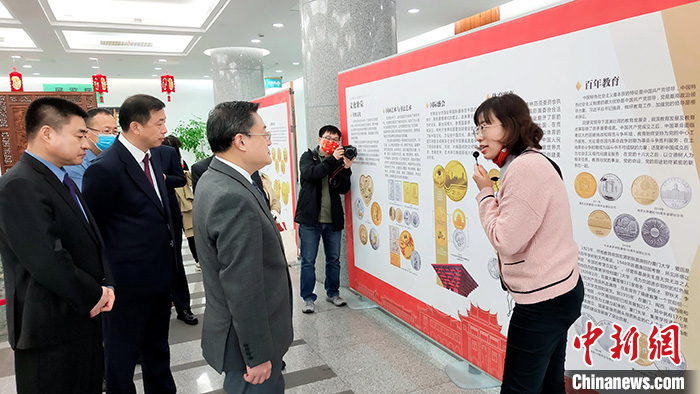 图为3月27日,张荣(右三)参观百年教育回顾展。 中新社记者 杨伏山 摄