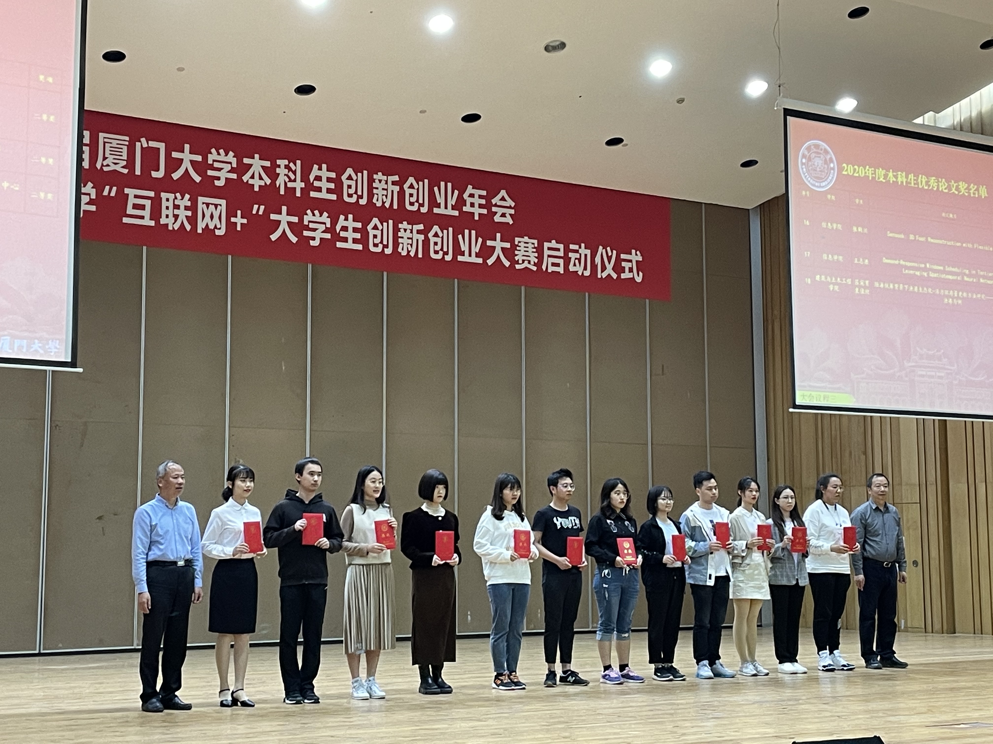 会上,厦门大学对第五届本科生创新创业年会优秀科创竞赛项目进行表彰。共表彰2020年度德贞社会课堂基金学生学业竞赛奖项目49个、2020年度德贞社会课堂基金优秀指导教师奖30人、2020年度本科生优秀论文奖18篇、优秀大学生创新创业训练计划项目51项、最佳大学生创新创业训练计划项目10项、最佳创意项目10项、我最喜爱的项目10项、品牌校级学业竞赛项目10项、指导教师突出贡献奖3人、2020年度本科生科创竞赛工作先进集体6个、2020年度本科生科创竞赛工作先进个人10人、第六届“互联网+”国赛金奖指导教师团队1个。