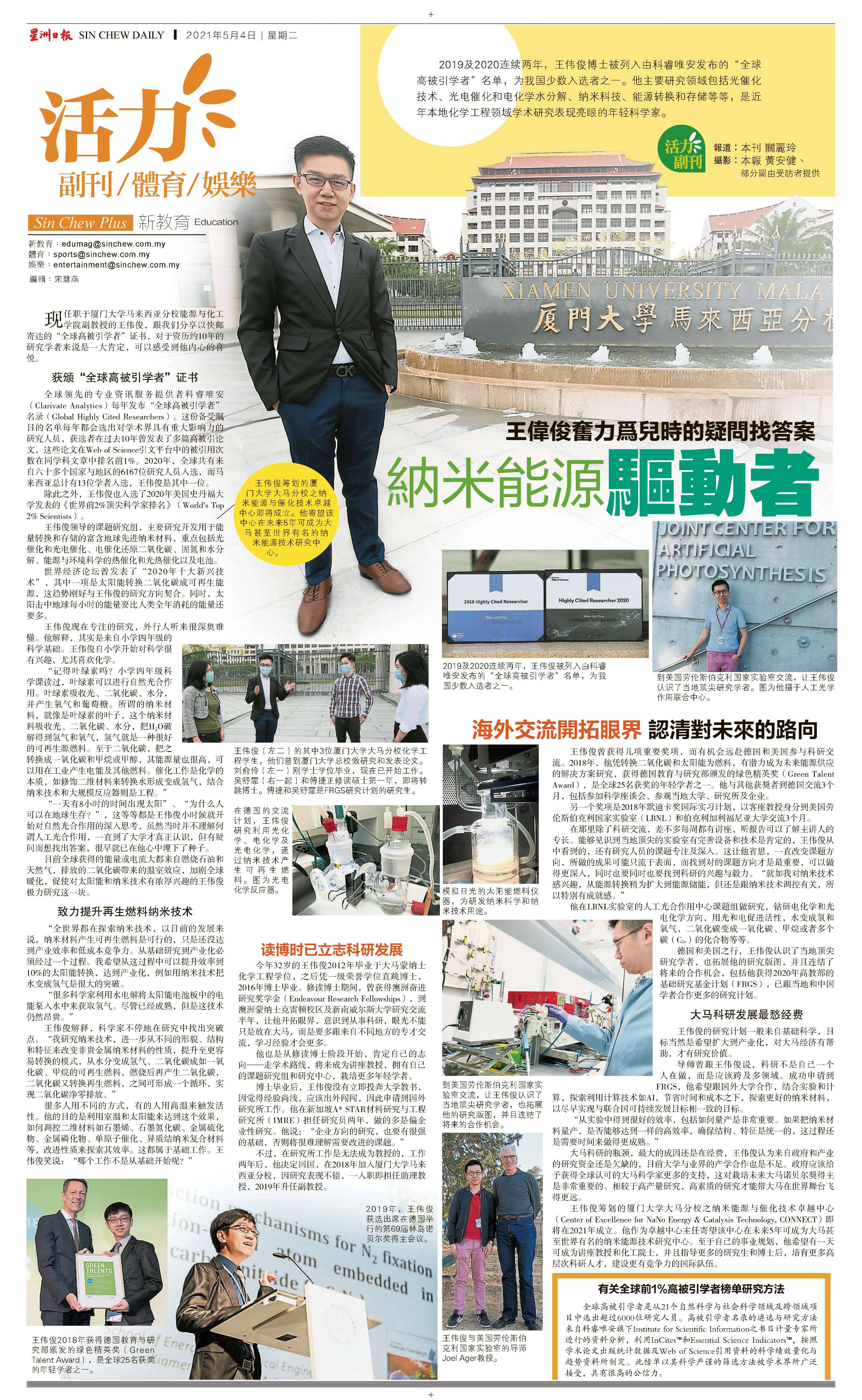 本文为《星洲日报》对王伟俊博士的专访,刊载于报纸2021年5月4日“新教育”版,原标题为“王伟俊奋力为儿时的疑问找答案,纳米能源驱动者”。《星洲日报》是马来西亚最具影响力的中文媒体之一,发行量居马来西亚报章首位。