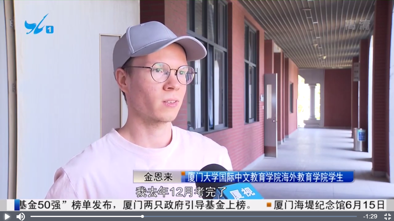厦门大学国际中文教育学院海外教育学院学生 金恩来:我去年12月考完了HSK(汉语水平考试)五级,如果新的标准,(实施)HSK 我觉得特别难的是学习很多词,语法要点会比较难。