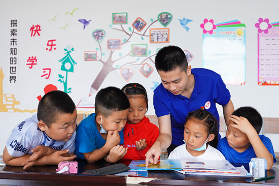 厦门大学研究生支教团成员为孩子们讲述山海情深的故事。