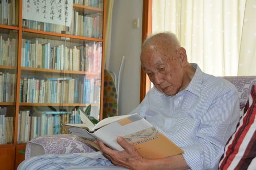 9月2日,厦门大学百岁教授潘懋元在家中翻阅书籍。(新华社记者邓倩倩 摄)
