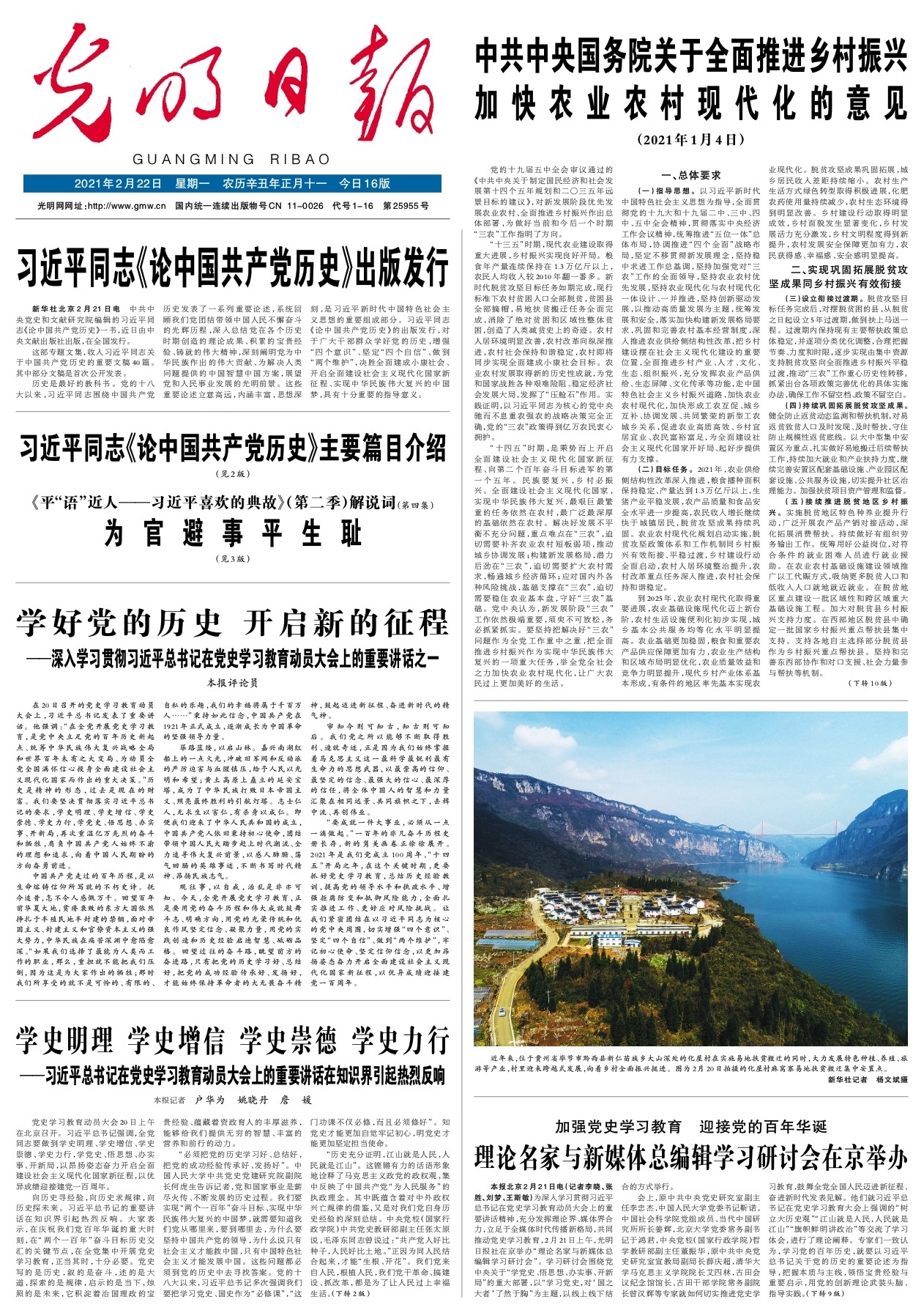 2月22日,《光明日报》刊发报道《学史明理 学史增信 学史崇德 学史力行——习近平总书记在党史学习教育动员大会上的重要讲话在知识界引起热烈反响》,文章引用了我校党委副书记徐进功的发言。徐进功表示,厦大师生将牢记初心使命、坚定信仰信念,积极开展党史学习教育,把革命精神内化于心、外化于行,转化为干事创业、勇担使命的强大精神动力。