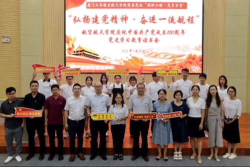 日前,厦门大学航空航天学院依托党委党校“旗帜工程·党员学堂”,举办了“弘扬建党精神 奋进一流航程”党史学习教育读书会,持续推进党史学习教育,重温中国共产党百年奋斗和中国航空航天发展历程。