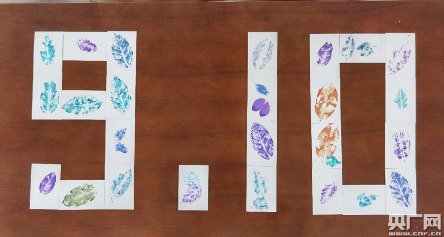 学生们将叶拓贺卡摆出“9.10”的造型(央广网发 通讯员供图)