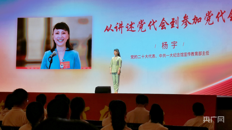党的二十大代表、中共一大纪念馆宣传教育部主任杨宇讲述“青春出发”故事(央广网记者 程若兰 摄)
