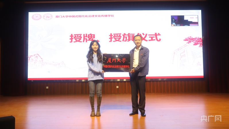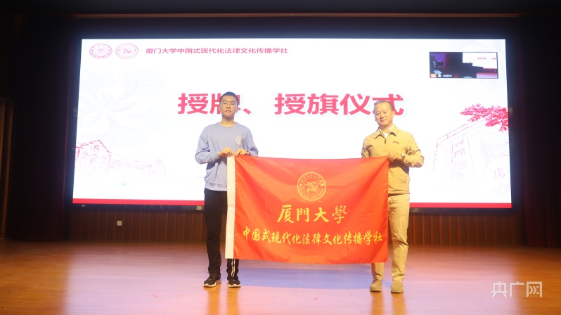 厦门大学法学院领导向学社授旗(厦门大学 供图)