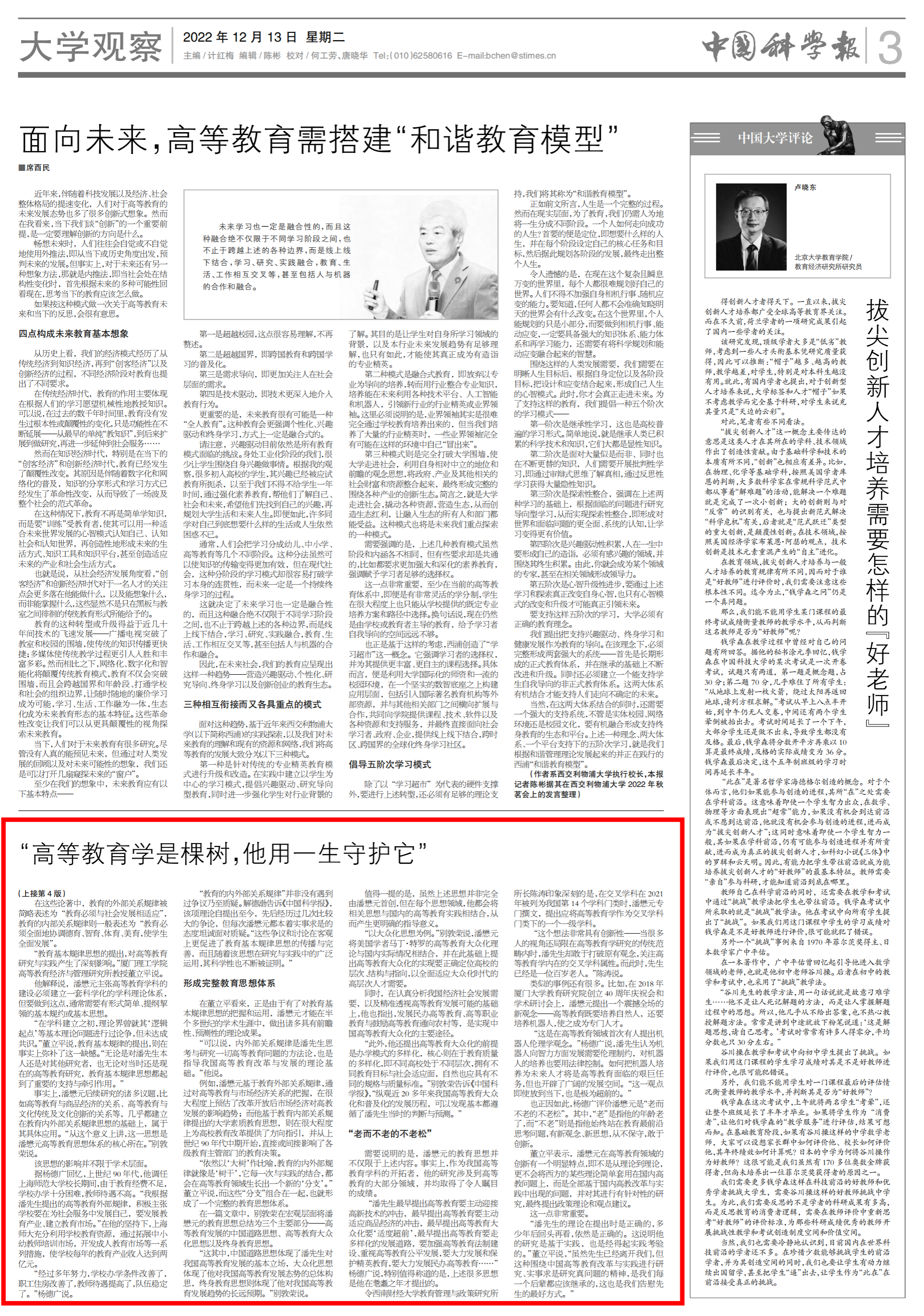 “依然以‘大树’作比喻,教育的内外部规律就像是‘树干’,它每一次与实践的结合,都会在高等教育领域生长出一个新的‘分支’。”董立平说,而这些“分支”组合在一起,也就形成了一个完整的教育思想体系。
