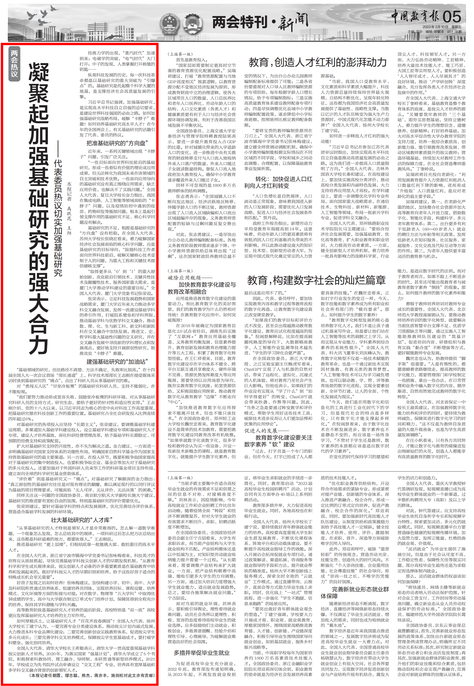 如何厚植沃土,让基础研究人才“百花齐放春满园”?全国人大代表、扬州大学校长丁建宁认为,一要完善专业分类建设体系,推动拔尖计划内涵式发展,大力推进本科专业品牌化建设;二要完善创新创业实践教育体系,促进拔尖学生多元化成长;三要完善学科交叉培养模式,保障拔尖学生宽基础成才。要打破学科壁垒,强化协同培养。