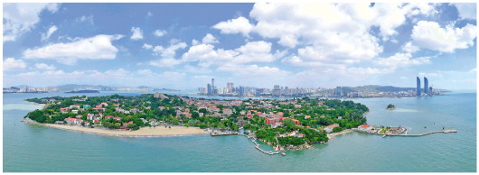 这是2021年10月6日拍摄的厦门鼓浪屿及鹭江道一带城市景观。 新华社记者姜克红摄