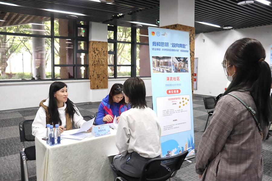 近日,随着主题为“我和思明‘双向奔赴’”的“职业体验·大学生社区挂职计划”校园双选会的举办,厦门大学76名大学生骨干将陆续走进该市思明区滨海街道、厦港街道和中华街道及其所属的19个社区,挂职担任为期4个月的基层团组织兼职副书记。