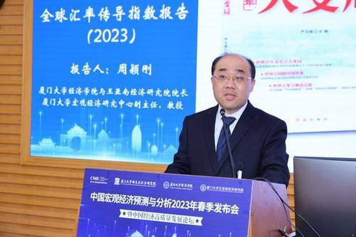 郑挺国最后,厦门大学经济学院与王亚南经济研究院院长、宏观经济研究中心副主任周颖刚教授发布了厦门大学经济学科与新华指数联合编制的《“全球汇率传导指数”报告(2023)》。报告指出,国际货币体系正经历百年未有之大变局,在SDR篮子货币中,人民币汇率传导指数稳居第三位,比2022年初同比增长11.2%,影响力的上升势头明显高于美元,在全球汇率传导网络中逐渐进入中间位置。