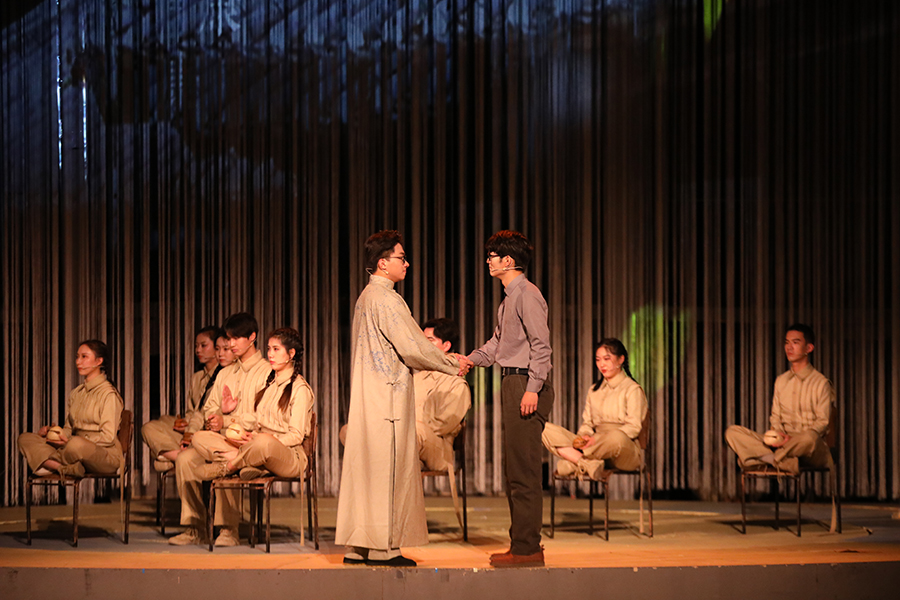 “一分为三的舞台加强了叙事在时空维度上的层次感,舞台中央的圆盘设计使得人物调度更加灵活多样,从这部剧中我能学习到许多有趣的舞美设计。”福建师范大学2019级文化产业管理专业学生李珍妮如是说。