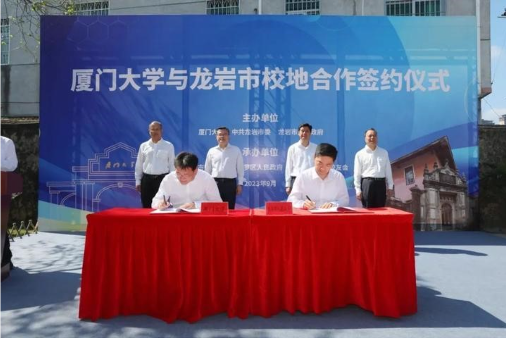 厦门大学党委常委、副校长江云宝和龙岩市委常委、副市长王洋签署《关于支持龙岩建设高水平产业研究院合作备忘录》。江云宝和新罗区政府主要负责同志签署《校地合作协议》。