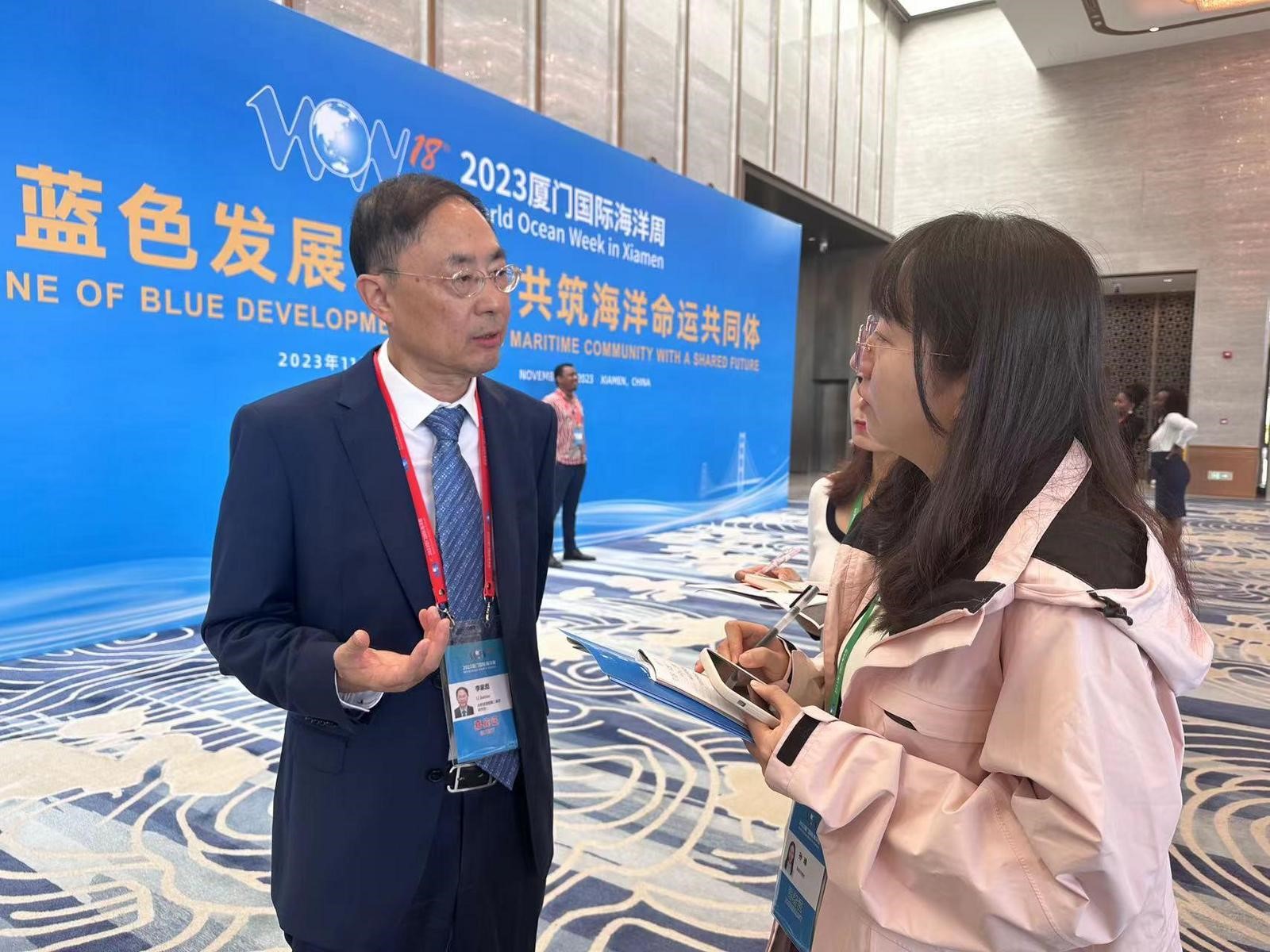科技日报记者孙瑜采访李家彪院士。科技日报记者 符晓波 摄