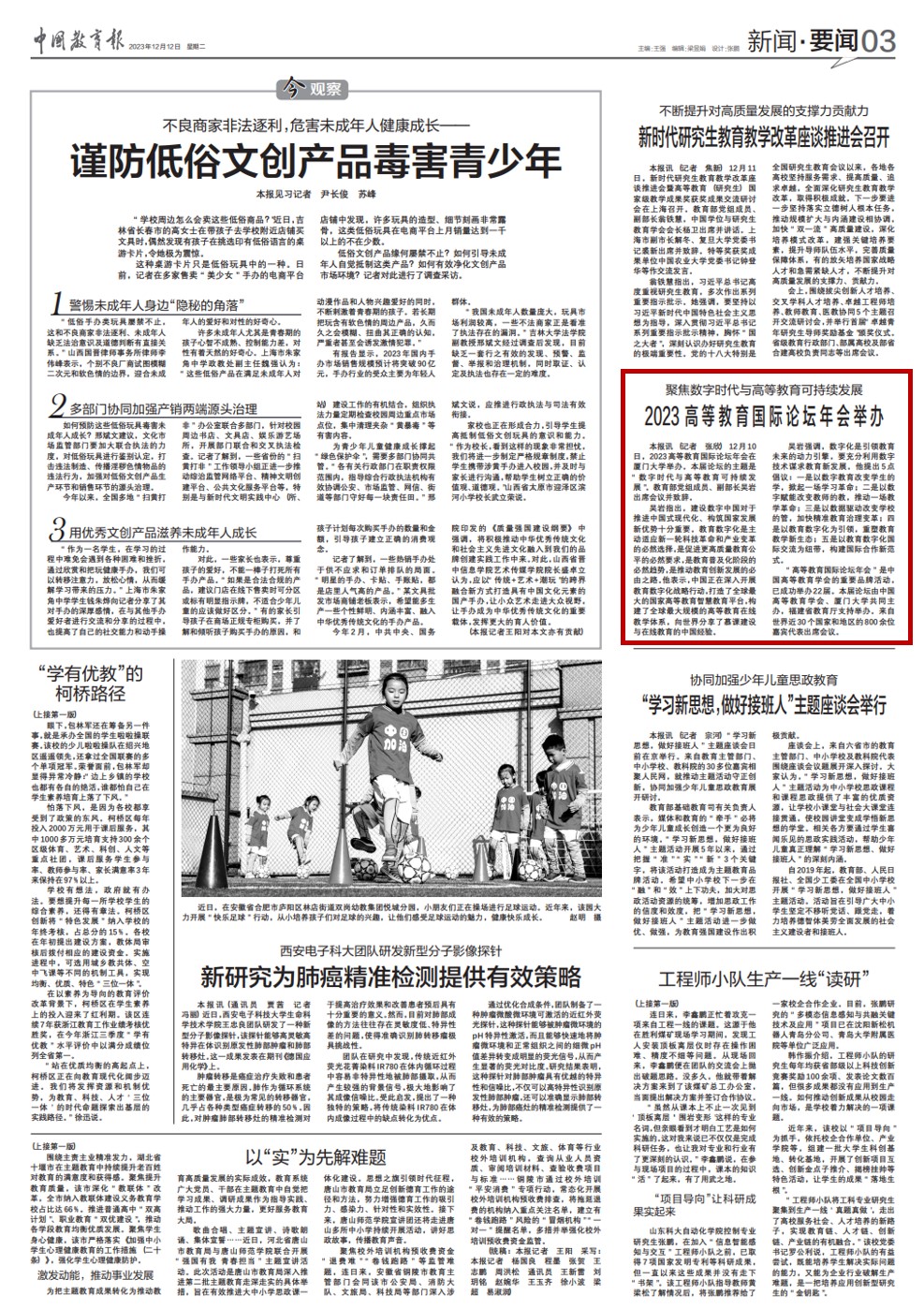吴岩强调,数字化是引领教育未来的动力引擎,要充分利用数字技术谋求教育新发展。他提出5点倡议:一是以数字教育改变学生的学,掀起一场学习革命;二是以数字赋能改变教师的教,推动一场教学革命;三是以数据驱动改变学校的管,加快精准教育治理变革;四是以教育数字化为引领,重塑教育教学新生态;五是以教育数字化国际交流为纽带,构建国际合作新范式。