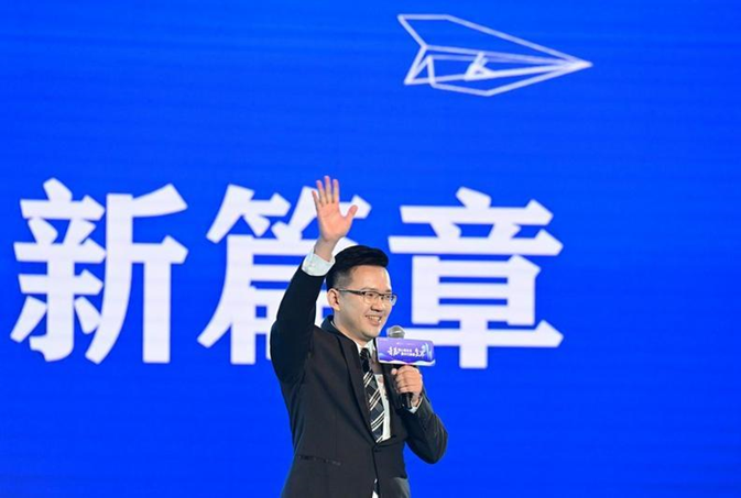 2023年6月16日,第二十一届海峡青年论坛开幕式现场,李伟国讲述在大陆创业经历。新华社记者 魏培全 摄