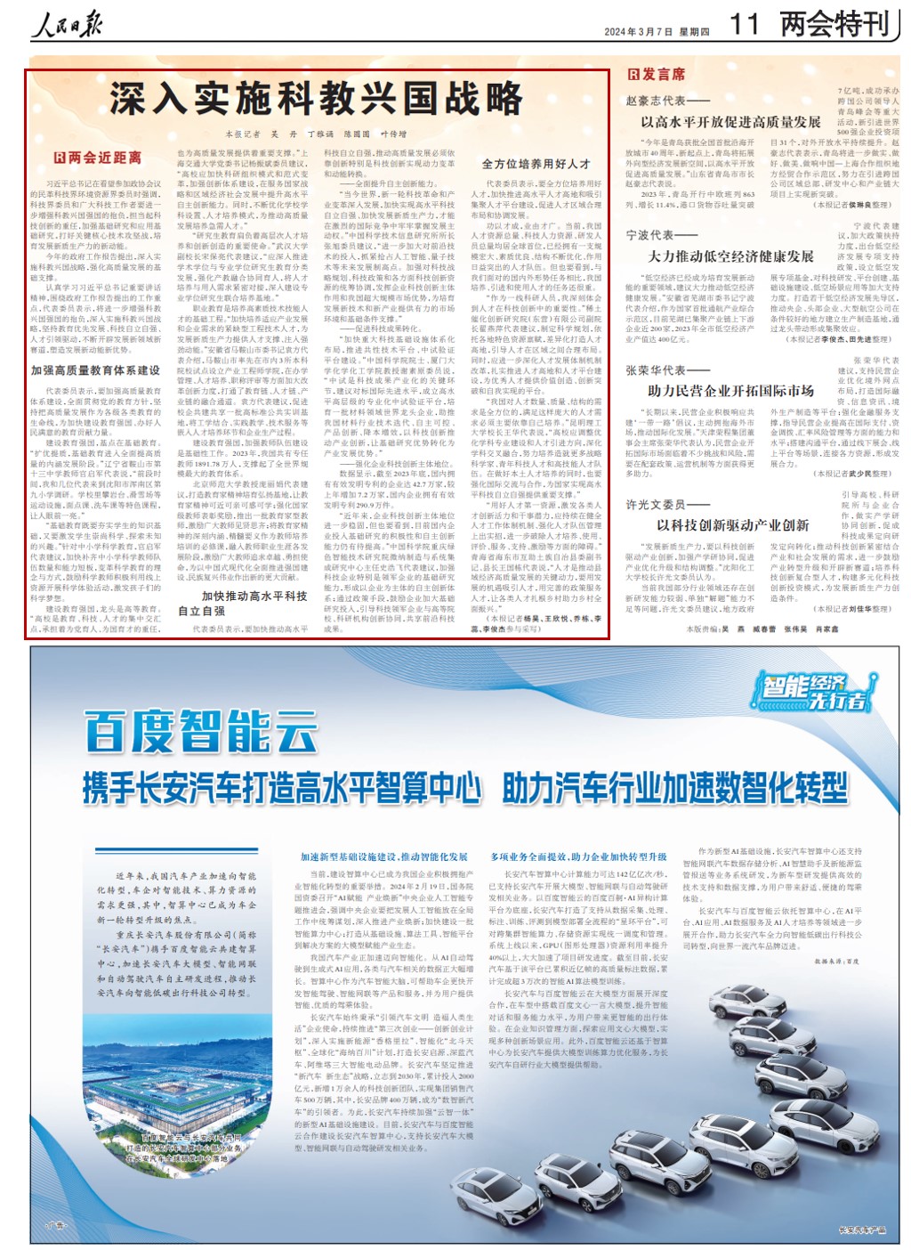 认真学习习近平总书记重要讲话精神,围绕政府工作报告提出的工作重点,代表委员表示,将进一步增强科教兴国强国的抱负,深入实施科教兴国战略,坚持教育优先发展、科技自立自强、人才引领驱动,不断开辟发展新领域新赛道,塑造发展新动能新优势。