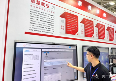 工作人员介绍智慧就业创新应用成果(央广网记者 龚雯 摄)